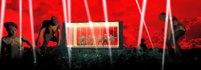 ودر صحنه بعد، تهیونگ از میان جمعیتی شلوغ و پرجنبوجوش فرار میکند، که نشاندهنده تلاش برای رهایی از فشارهای خارجی و انتقادات دیگران است. این جمعیت میتواند نماد طرفداران، رسانهها، یا انتظارات جامعه از «آیدول ها و سلبریتی ها» باشد که اغلب ایشان را در چارچوبهای اخلاقی خاصی قرار میدهند.